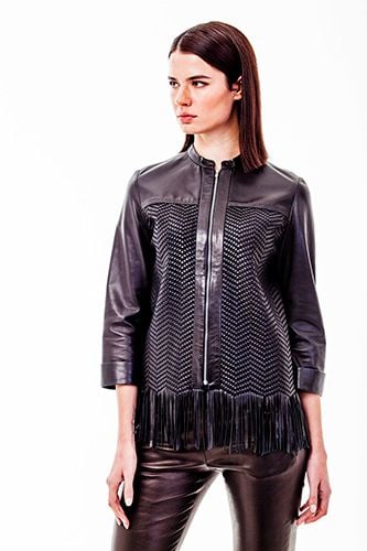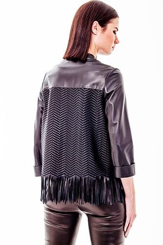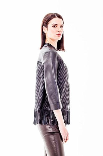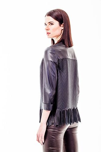 Erleben Sie unvergleichliche Eleganz und meisterhafte Handwerkskunst mit dieser exquisiten Damenjacke aus Lammleder, die ein echtes Statement-Stück für jede Garderobe darstellt. Sorgfältig aus feinstem Schaf-Lammleder gefertigt, bietet diese Jacke einen luxuriös weichen Griff und ein Gefühl von Opulenz, das sofort spürbar ist. Ihr zeitloser dunkelgrauer Farbton wird wunderschön durch ein markantes Chevron-Muster auf den Vorder- und Rückseiten ergänzt, das eine moderne Textur und visuelle Tiefe verleiht. Die dynamischen Lederfransen am Saum sorgen für einen Hauch von Bohème-Chic und fließende Bewegung bei jedem Schritt, während die dreiviertellangen Ärmel mit Manschetten und der elegante Stehkragen eine raffinierte Silhouette gewährleisten. Vielseitig genug für alle Jahreszeiten und Anlässe, von eleganten Freizeit-Looks bis hin zu formelleren Anlässen, verspricht diese strapazierfähige und makellos genähte Jacke dauerhafte Schönheit und beständigen Stil für viele Jahre.