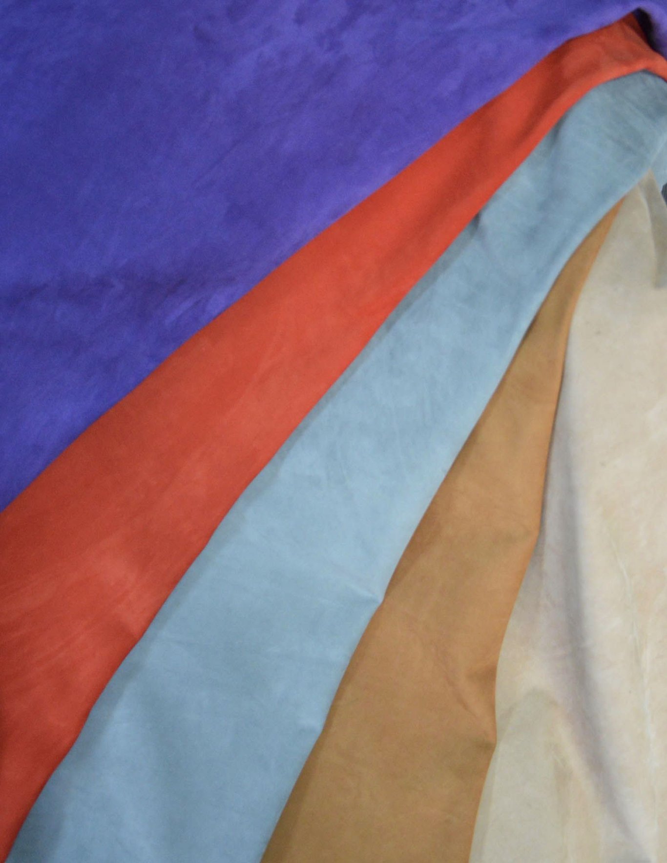 This premium bovine boxcalf leather, meticulously processed with chrome tannage, offers an unparalleled material for your fashion and leather goods designs. The rich, carefully curated palette of deep royal purple, warm burnt orange, serene slate blue, natural cognac tan, and elegant cream hues is designed to infuse every project with distinctive depth and character. Visually presenting a velvety matte surface, this leather immediately distinguishes itself with an exceptionally soft handfeel. With an approximate thickness of 1-2 mm, it is effortlessly workable for garments such as jackets, skirts, and dresses, providing flexibility for unrestricted movement and a natural drape. Furthermore, its versatility makes it ideal for crafting luxurious leather accessories like bags, shoes, wallets, and belts. Promising superior workability, excellent durability, and lasting color retention, this special garment leather is an inspiring choice to unleash your creativity and add a touch of luxury to every piece you create.