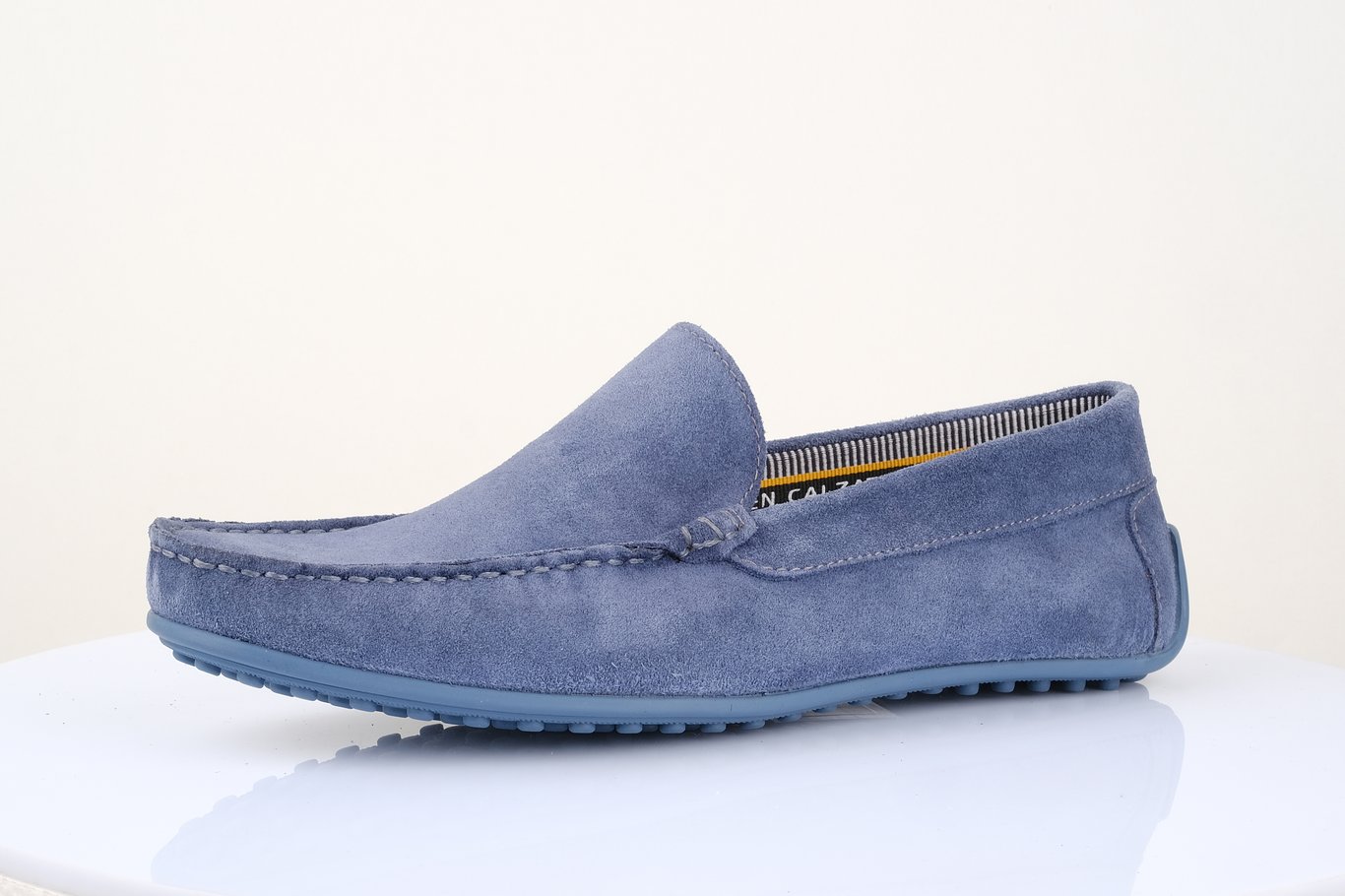 Experience unparalleled comfort and sophisticated style with these men's classical driving moccasins, meticulously crafted from genuine dusty blue suede leather. The soft, supple texture of the suede upper provides exceptional breathability and molds perfectly to your foot, ensuring maximum comfort during long drives or leisurely strolls. Perfect for spring and summer, these versatile slip-ons are ideal for smart casual outings, weekend adventures, or even a relaxed day at the office. The distinguishing feature is the incredibly flexible rubber driving sole, designed with textured nubs that extend up the heel, offering superior grip and pedal feel. Inside, a soft, striped textile lining enhances breathability and comfort, while the contrasting light grey stitching around the apron toe and side panels adds a touch of artisanal craftsmanship. Elevate your seasonal wardrobe with this durable yet lightweight footwear, promising both enduring quality and timeless appeal.