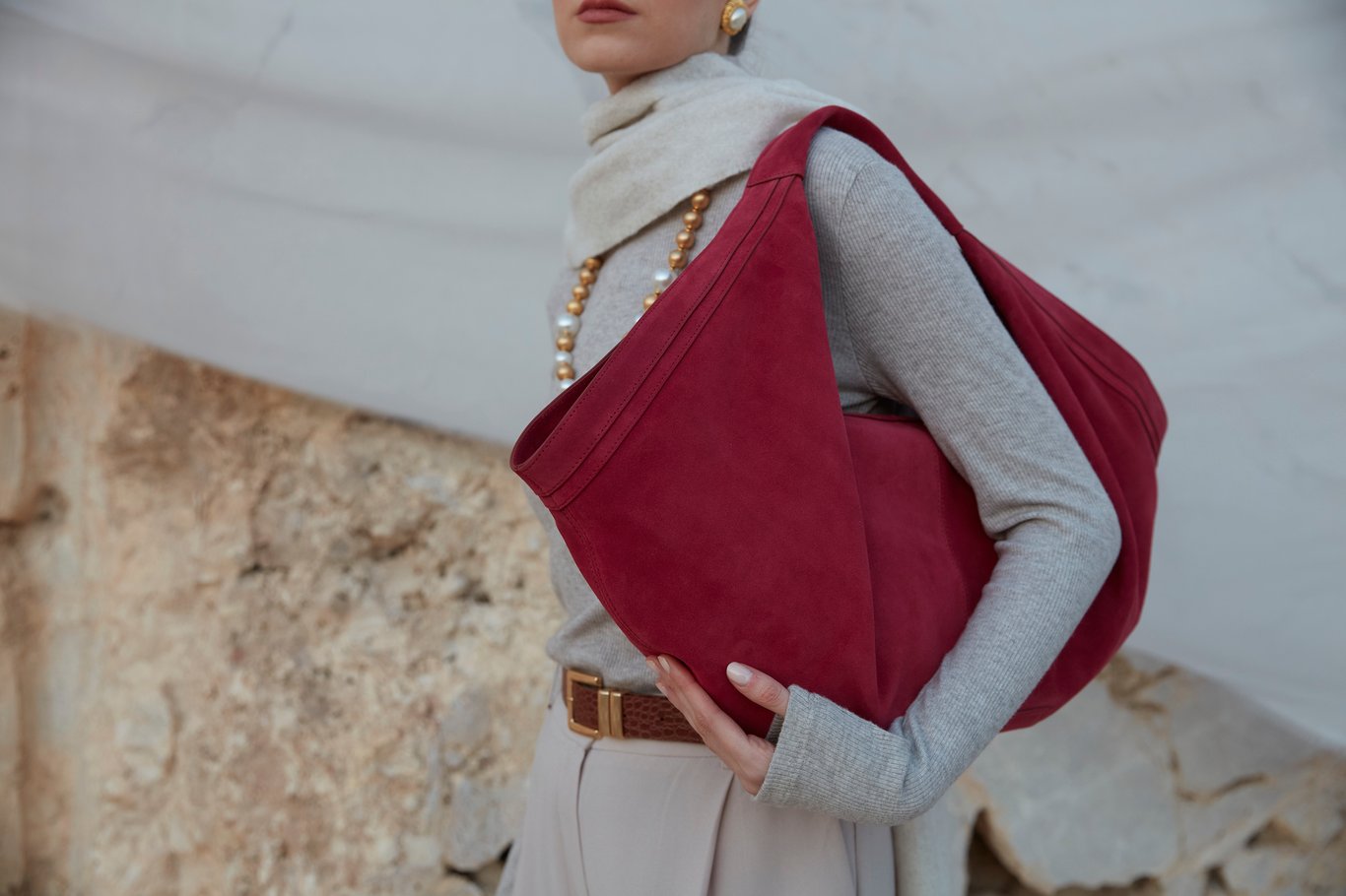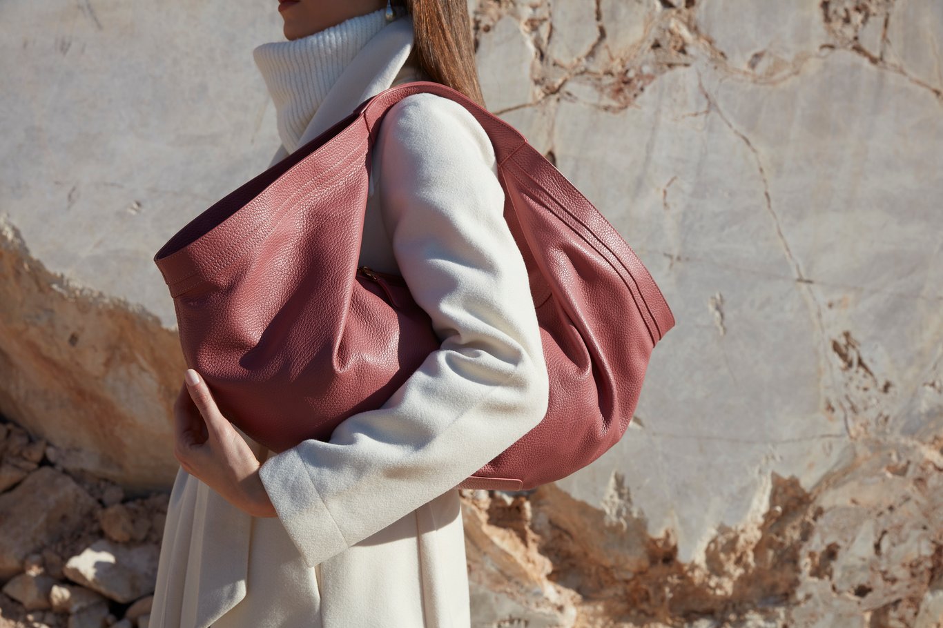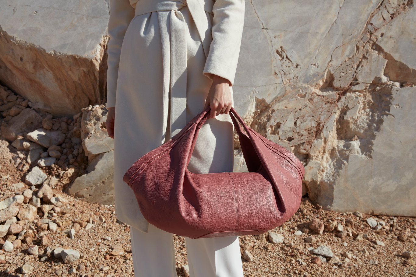 Experience unparalleled elegance with this exquisite women's bag, meticulously crafted from premium bovine calf leather. The inherent softness and pliability of the leather allow for a beautifully slouchy, modern, and unstructured silhouette that drapes gracefully. As seen in the images, the deep burgundy variant showcases a refined, suede-like finish, while the dusty rose version features a soft, natural pebbled grain, both exemplifying the luxurious versatility of calf leather. With generous dimensions of 60x40x12 cm, this bag offers exceptional capacity, making it a perfect companion for everything from daily essentials to weekend getaways. Its minimalist design, free from external hardware, and a wide, seamlessly integrated shoulder strap ensure comfortable wear throughout the day. The durable textile lining protects your belongings, making this an all-season, timeless accessory that effortlessly elevates any ensemble.