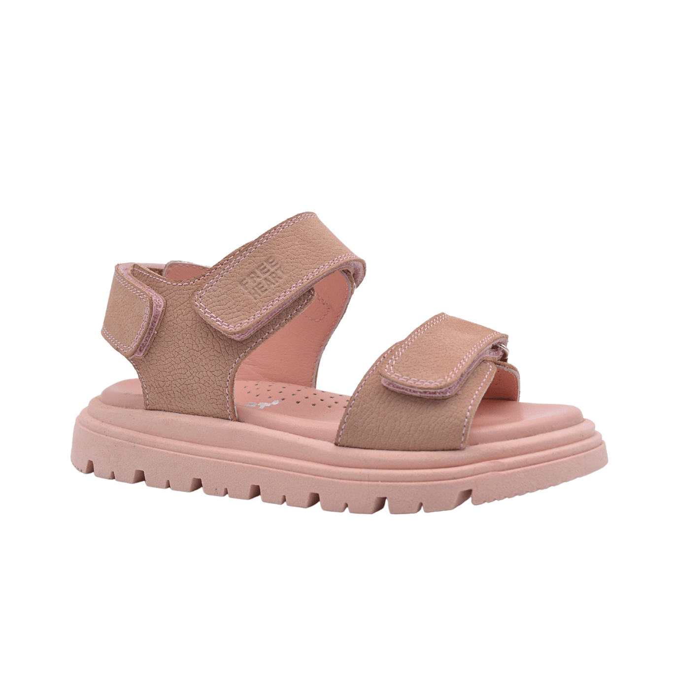 Созданные с исключительным качеством и тщательным вниманием к деталям, эти премиальные кожаные сандалии идеально подходят для весенне-летних приключений ваших детей. Визуально привлекательный пудрово-розовый (бежево-розовый) оттенок и выраженная текстура зернистой натуральной кожи верха придают этим сандалиям стильный, но прочный вид. Подкладка из мягкой светло-розовой кожи и перфорированные детали на стельке обеспечивают максимальную воздухопроницаемость и комфорт в течение всего дня для активных детских ножек. Три регулируемые застежки-липучки — на носке, подъеме и щиколотке — обеспечивают надежную, настраиваемую посадку и невероятно легко надеваются и снимаются детьми самостоятельно. Массивная, рифленая, но при этом легкая подошва TPR LIGHT обеспечивает отличную гибкость и превосходное сцепление, гарантируя безопасные шаги как на детской площадке, так и во время ежедневных прогулок. Украшенные фирменным знаком "FREE HEART", эти сандалии идеально сочетают в себе комфорт, долговечность и современный стиль для каждого шага.