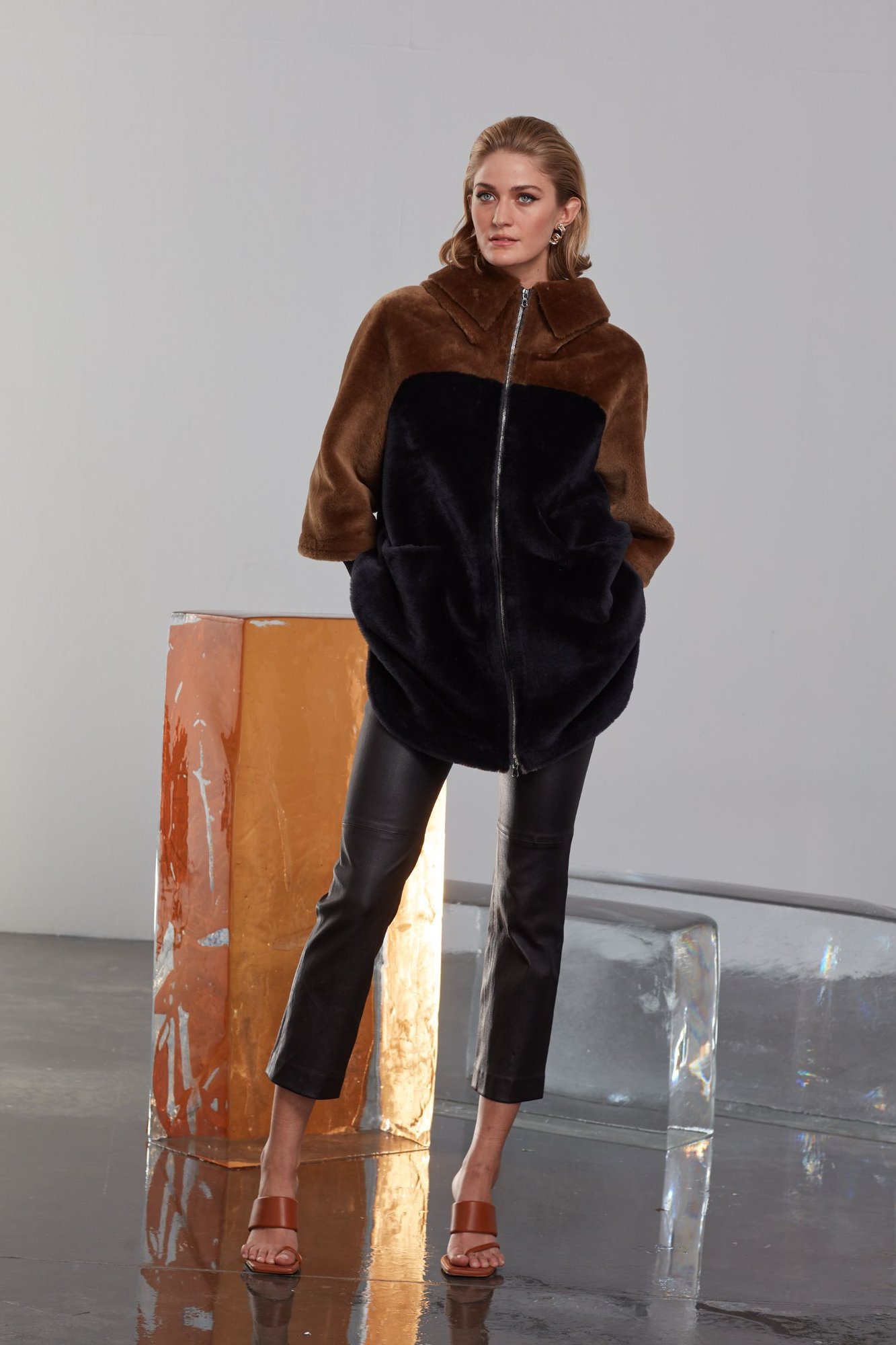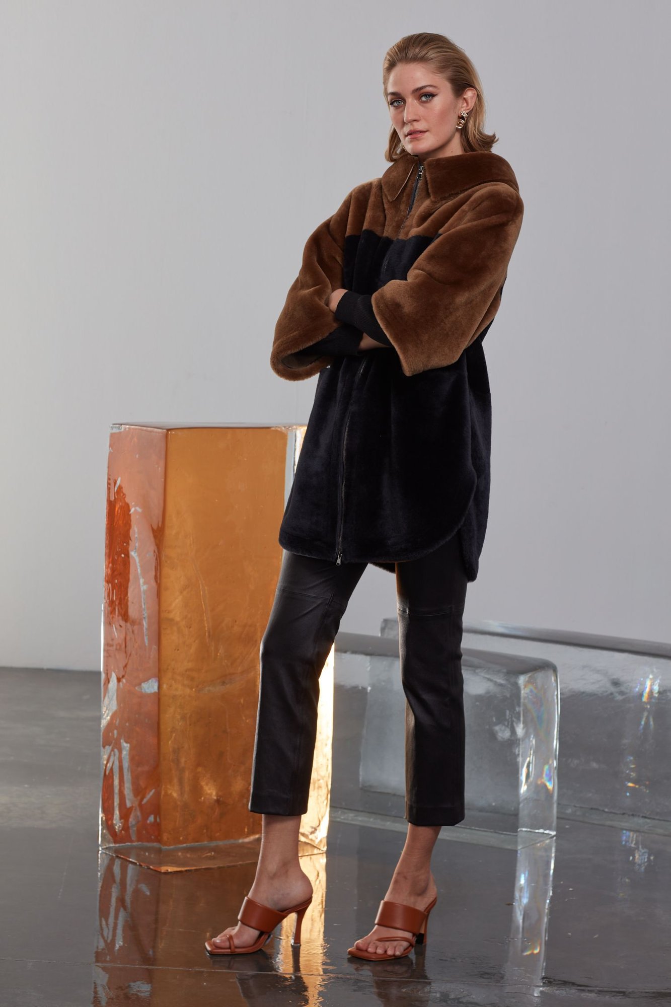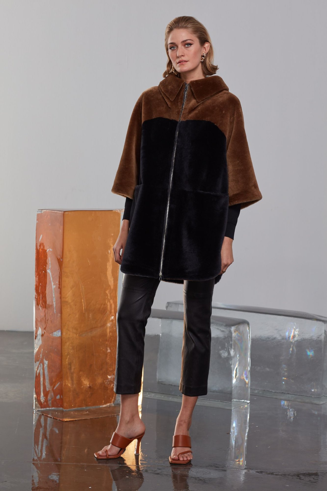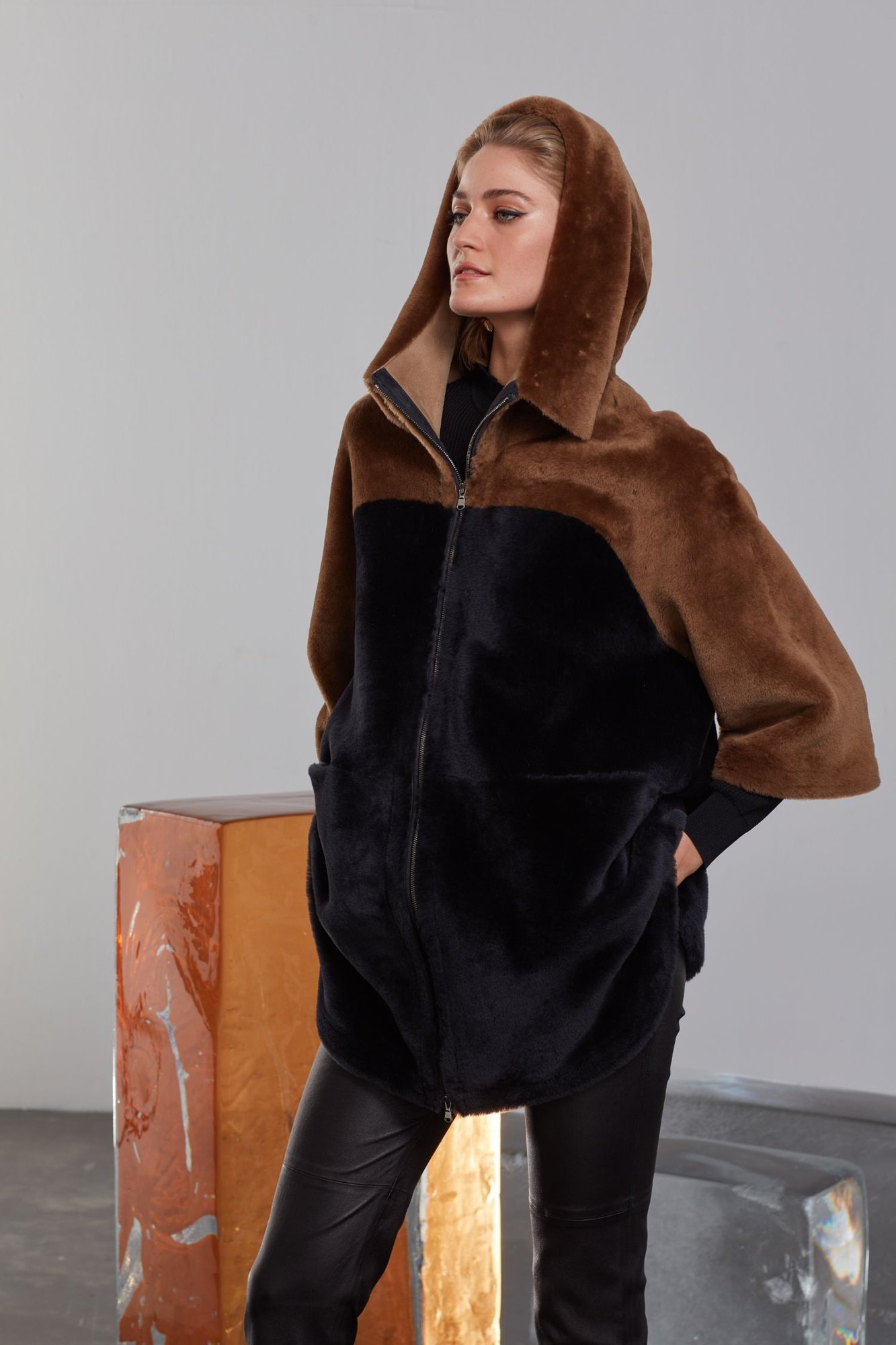 Добавьте изысканности вашему гардеробу с этой превосходной шубой, тщательно созданной из натуральной овчины-шерлинг, которая воплощает непревзойденное качество и утонченное мастерство. Ее отличительный двухцветный дизайн, включающий насыщенный карамельно-коричневый верх и глубокий, истинно черный низ, создает яркую современную эстетику. Невероятно мягкая, плюшевая текстура дарит роскошные ощущения при контакте с кожей, а свободный, объемный крой обеспечивает максимальный комфорт и полную свободу движений. Стильный воротник-стойка, полноразмерная блестящая серебристая молния и незаметные интегрированные боковые карманы добавляют как функциональности, так и шика. Идеально подходящая для различных случаев, от повседневной носки до эксклюзивных вечерних мероприятий, эта универсальная вещь обещает исключительное тепло и уют в прохладное время года. Эта вневременная инвестиция, благодаря своим превосходным материальным свойствам и долговечному дизайну, станет ценным и долгосрочным элементом вашей коллекции.